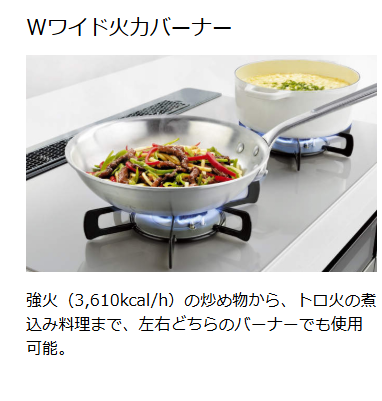 Wワイド火力や便利機能を搭載したビルトインコンロ