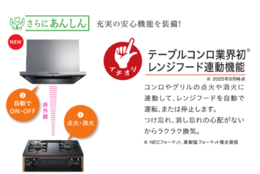 テーブルコンロ初のレンジフード連動機能でさらに家事をサポート