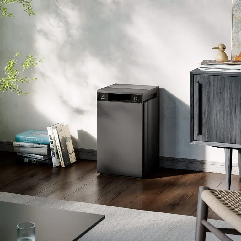 Wフィルター構造と両吸いシロッコファンの採用により、大風量化を実現しながらも本体サイズは驚くほどコンパクト。重さも約11kgほどで、置きたい場所にラクに移動できます。 - COCORO AIR搭載でもっと便利に快適に