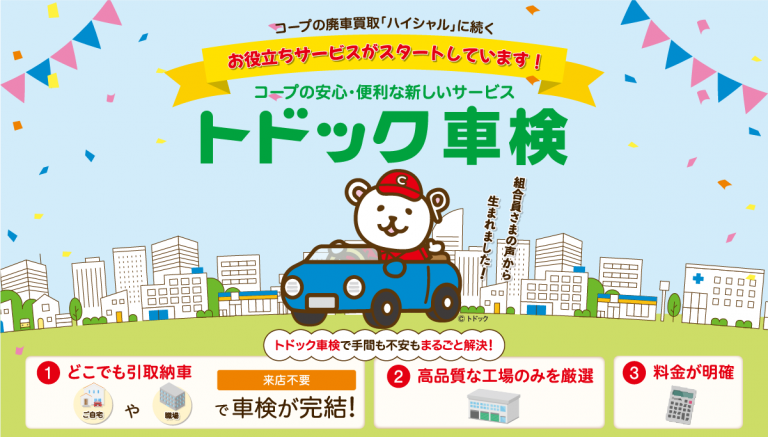 コープさっぽろは「トドック車検」を開始しました。厳選した整備工場で高品質の車検を実施!スタッフがご自宅や職場までお車をお引き取りに伺いますので、工場へ出向く手間はありません。料金…